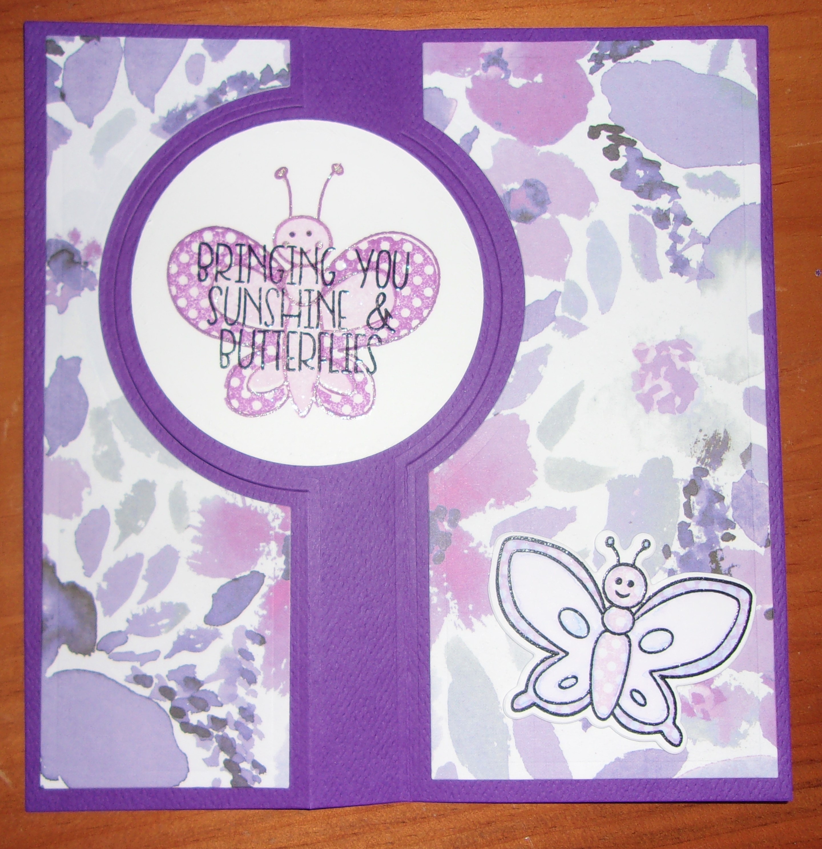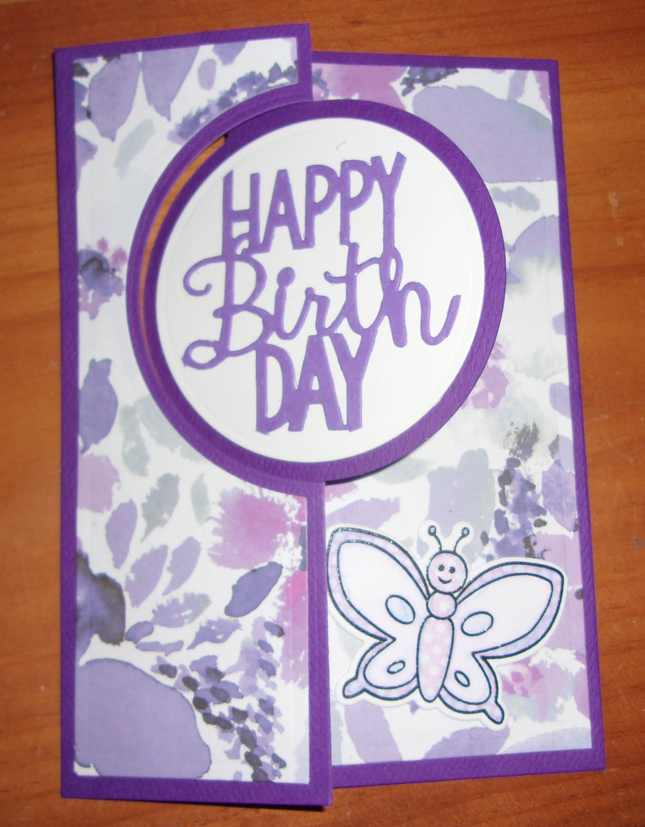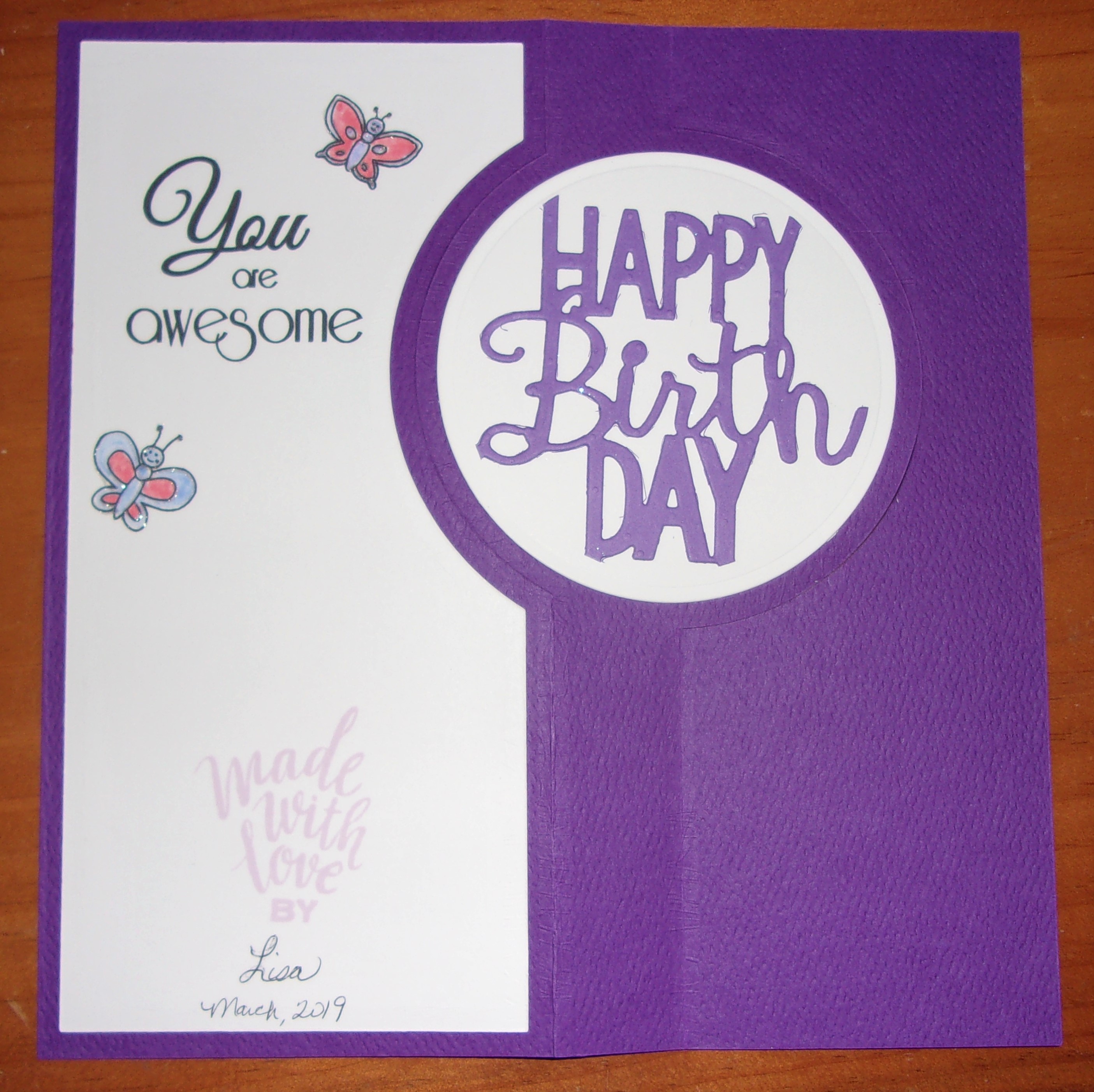This card was made and sent to a lady turning 106 years old. The person requesting the card said that the recipient had failing eye-sight, so large images and bright colors would help. I chose to use a bright purple card base and patterned paper in matching colors. I used butterflies from The Stamps of Life along with a sentiment from the same set. It is called butterfly2stamp and a couple of matching sets and dies. The flip-it die set is a 5 X 7 set from Sizzix. I cut a piece of white paper for the back to have an easy place to write a sentiment. I chose to stamp You are awesome, from Cas-ual Friday, This card was mailed earlier in the week to ensure that it would be delivered in time for her birthday.