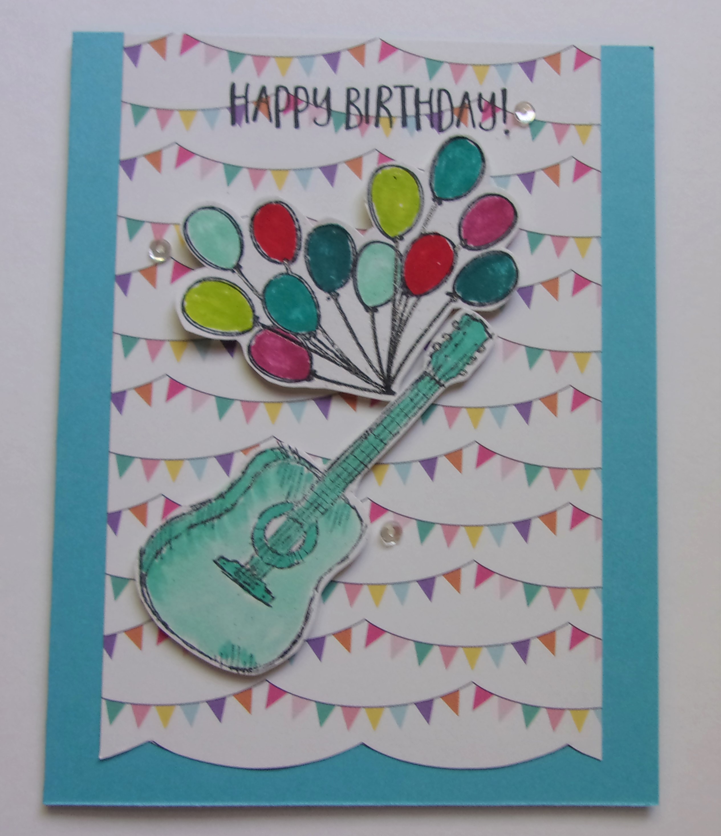 2. Well girlfriend you have been very busy. The first one looks very yummy, the cute little “party animal” (aka elephant) is adorable and the colorful guitar and balloons make for a perfect “happy” birthday card.