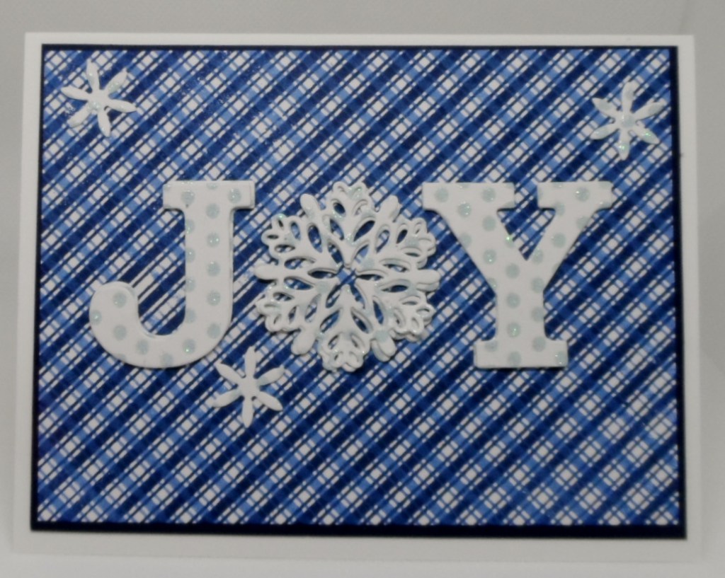 The As You See It Challenge #212 was “I want you to color me – Quickly”. Blue and under 10 minutes. So I gathered up the GKD: Background Diagonal Stamp, Navy and White cardstock, navy and powder blue ink, Memory Box Snowflake Joy die, and some glitter dotted cardstock (unknown paper pad). Moved my Big Shot within reaching distance, the cardstock was ready so was the Misti….GO….Stamped the diagonal in navy — where’s the tidy towel pulling baby wipes turning the background stamp, inking with powder blue…done! Running the Joy die through the Big Shot not once, not twice but three times! (after the first time through the big shot discovered I had two pieces of cardstock — one went flying) Oh brother, all of those little pieces in the snowflake, found the pick and started pushing them out. I glued the J and Y in place layered three times leaving the snowflake for last in case I didn’t get three completed. I glued the middle snowflakes from the die to the card front too. If only I had a little more time, I would have added some bling to the little snowflakes and lined up that snowflake O a little better. My heart was racing but made it to the card front; my fingers are still blue but mission completed in 9 minutes and 50 seconds!