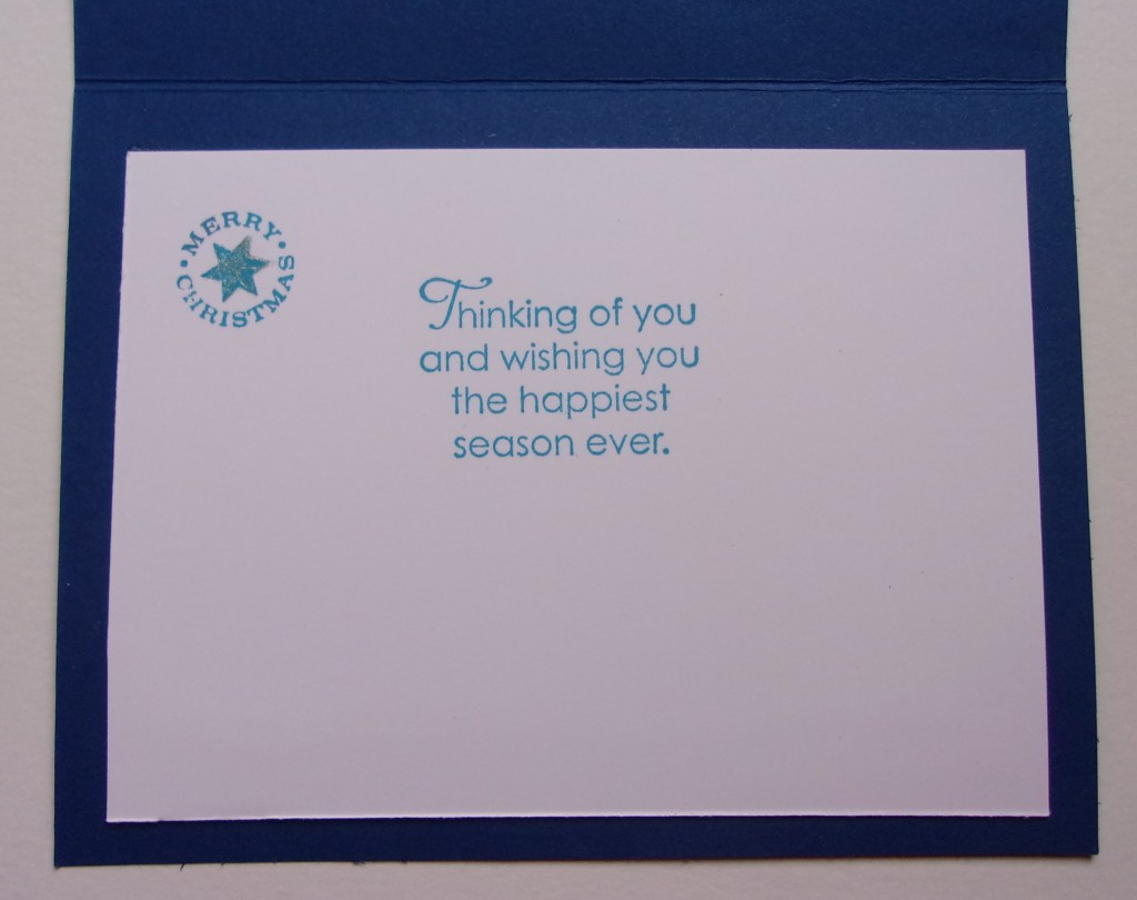 Like both of the cards, too. The blue ornament card is very pretty. I really like the embossed lines you added and the script sentiment is beautiful. Thanks for showing the inside of your card.