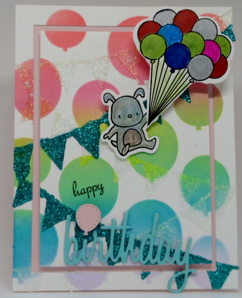 Double D Challenges Fun with Balloons Challenge – stenciled balloon background and die balloon. Thanks for looking.