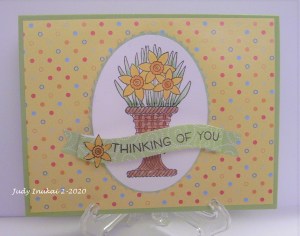 I stamped and fussy cut one of the daffodils from the same stamp used in the basket for the element on the sentiment banner.