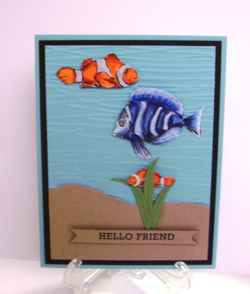 Fun, ocean scene, Judy. Love the use of your embossing folder and the fish are colored so beautifully.