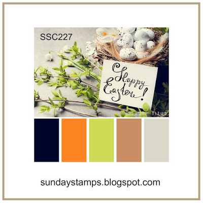 My card today will be entered into the Sunday Stamps SSC227 Spring Fever color challenge. The three colors I chose from graphic are hopefully close to the challenge colors. My base card and focal image layer are my “crumb cake” color, the stencil was sponged in SSS Orange Peel for the bright orange color on the graphic and the dark color is a GKD navy.