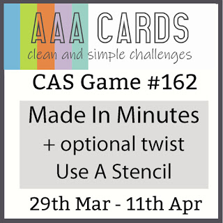 7. Great design. Love that leafy stencil up in the corner. Thanks for playing at AAA Cards, hope to see you join in with future challenges too. Keep safe, stay home and craft instead!
