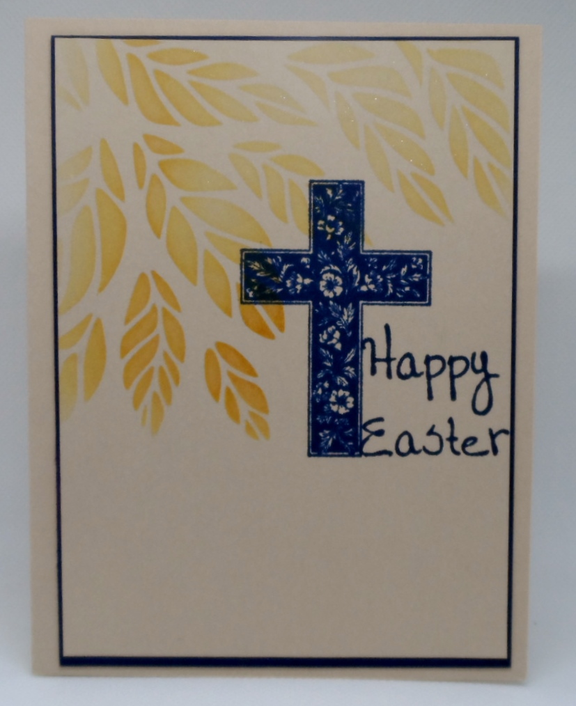 The requirements for AAA Cards clean and simple challenge #162 was to be made in minutes with an optional twist of using a stencil. For some reason it takes longer to find all of the items for a project than to create. This did come together very quickly and the stencil is a SSS stencil. The stamp sets were both SU’s Crosses of Hope and Miracle of Spring. It was quite a miracle that I eye-balled that sentiment that it fit perfectly in the space. That does not happen all too often in my case.