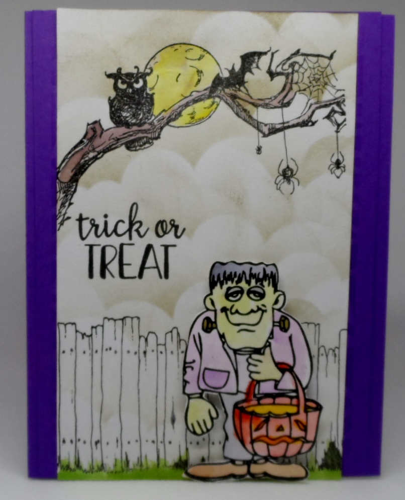 1. Fun card! Love your Frankenstein in front of the fence. Fall is here at my house. I had to turn the furnace on as it was a bit too cold in my house.