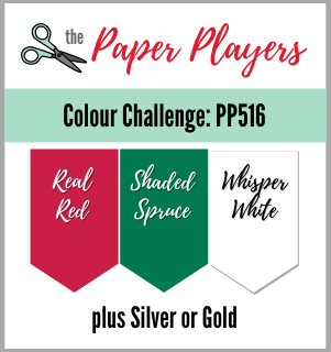 A beautiful and elegant CAS card Gayle, proving these colours don’t have to mean Christmas. Thanks for playing along with my colour challenge at The Paper Players this week!