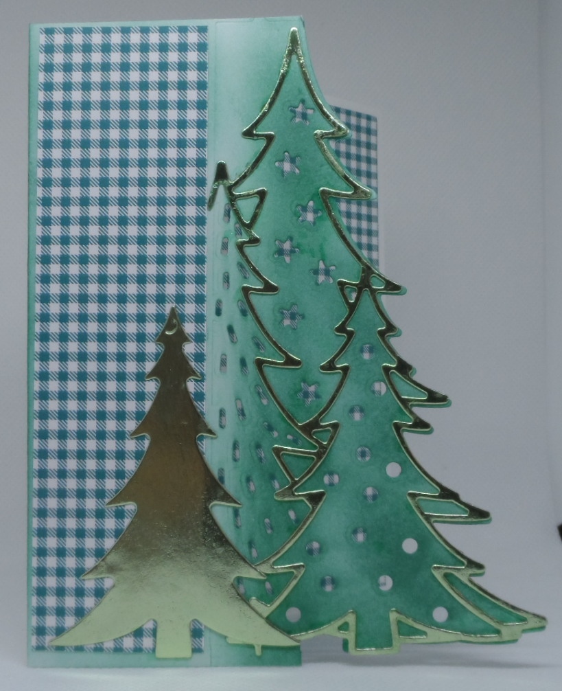 So this particular die cuts the edge, the single tree and an outline for the edge. Pretty cool. Which one would you prefer: the regular A2 size or the shortened version to match the die size?