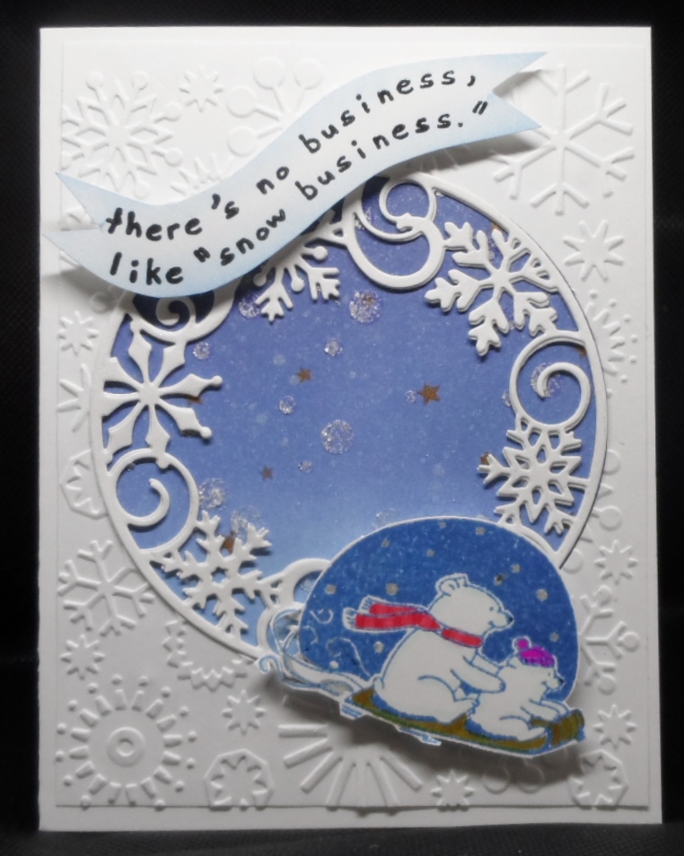 That die cut against the snowflake ef with those cute little sliding bears makes a perfect winter wonderland card.