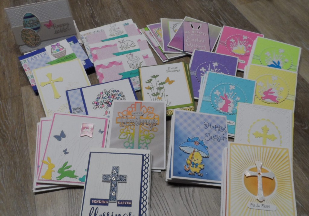 Gorgeous sympathy card and an impressive collection of Easter cards for our troops. Stay warm!