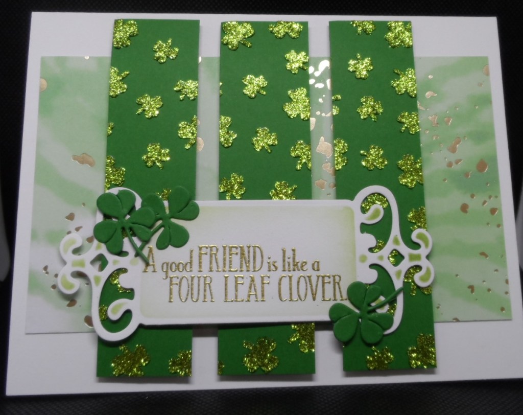 Your St. Patrick’s Day card is such fun with the gold glitter shamrocks!