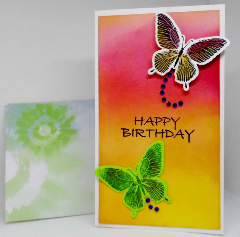 Thanks, Lisa, I wasn’t sure if I should use a more natural butterfly since the background is colorful. I like this mini slim line size much better than the larger one but more than likely will stick with A2 size.