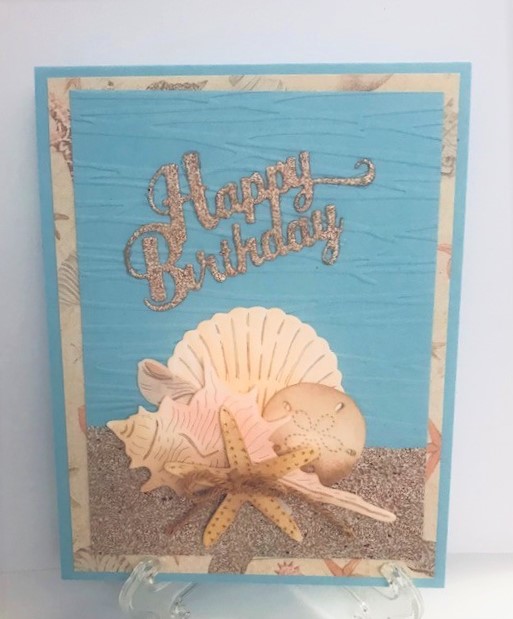 Those shells look amazing on the sand. So realistic I can imagine myself walking on the beach. Great card. I love everything about it.