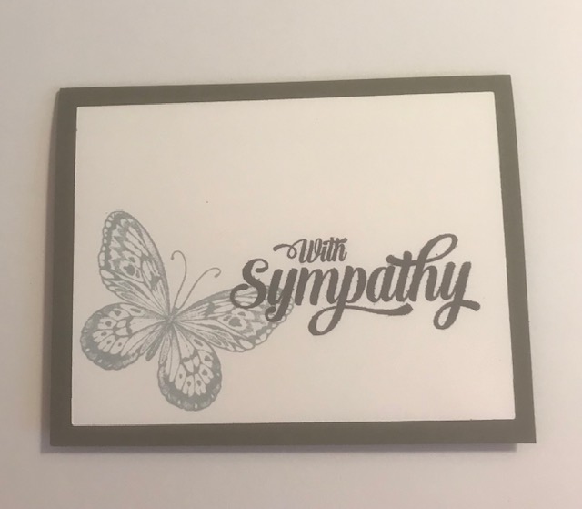 3. I love the butterfly stamped in the soft gray color along with this sentiment your card should bring comfort to the recipient.