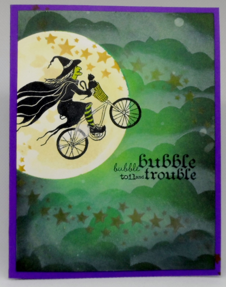 2. What a fun one Gayle! The witch on the bicycle with the cat in the basket is fabulous, as is that amazing sky! You do rock Halloween challenges.