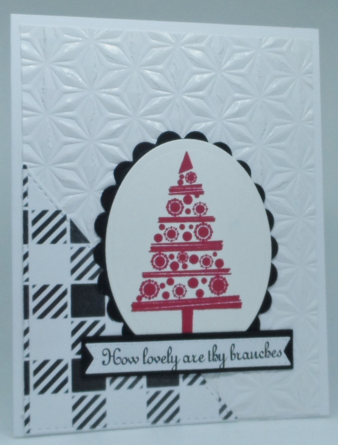 2. You nailed this one perfectly. A little bit of embossing for interest, plaid and a pop of red combined into a pretty design.