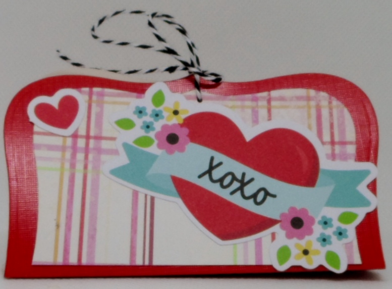 Hard to believe that Valentine’s Day is only one week away and I actually have all of my cards and treats completed. For my project today, I made a treat box that hold 4 Hershey Kisses. Using Spellbinder’s Labels 8 die set, I cut the base using the largest die, then the second largest to cut some patterned paper and scored the base die at 2″ and 3-1/4″. Thanks to Amanda over at Newtons Nook Designs for figuring out the math. I searched their site for the link but couldn’t locate it.