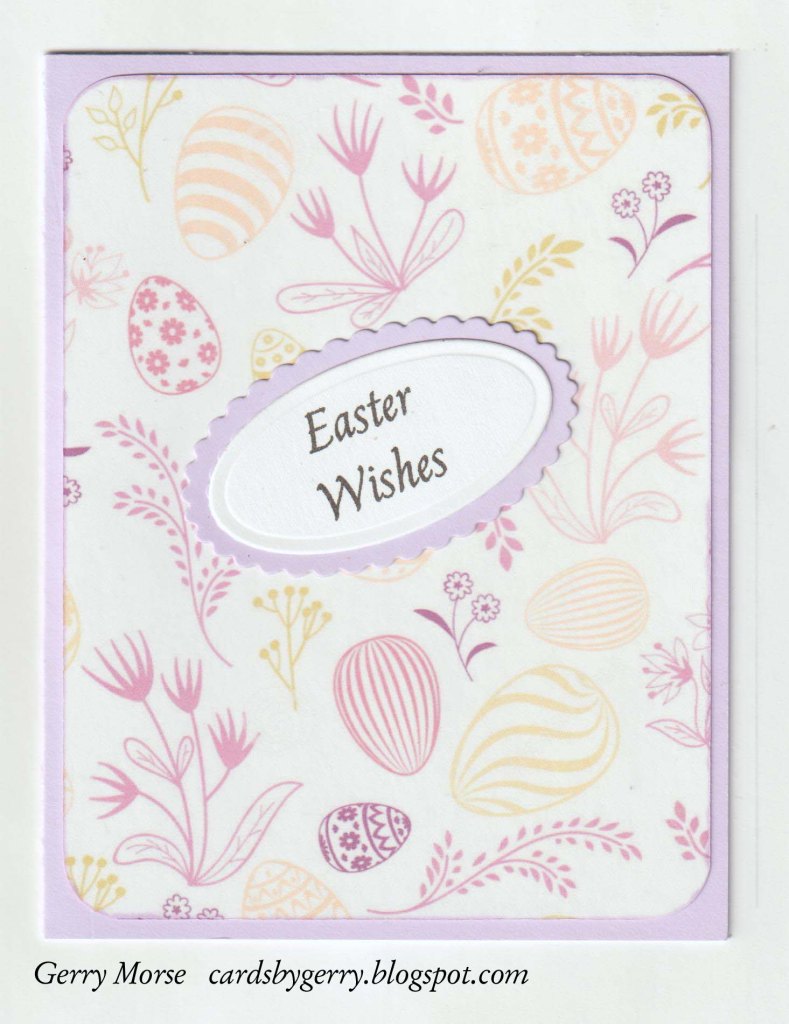 Today’s card is for our 24 year old granddaughter. I usually make some kind of fun fold for her but this year she gets a “plain” old card. Pp was found online, sentiment was printed on the computer, ovals are Spellbinders Petite oval & Petite scalloped petite oval. After rounding the corners of the pp I edged all around with a Copic marker.