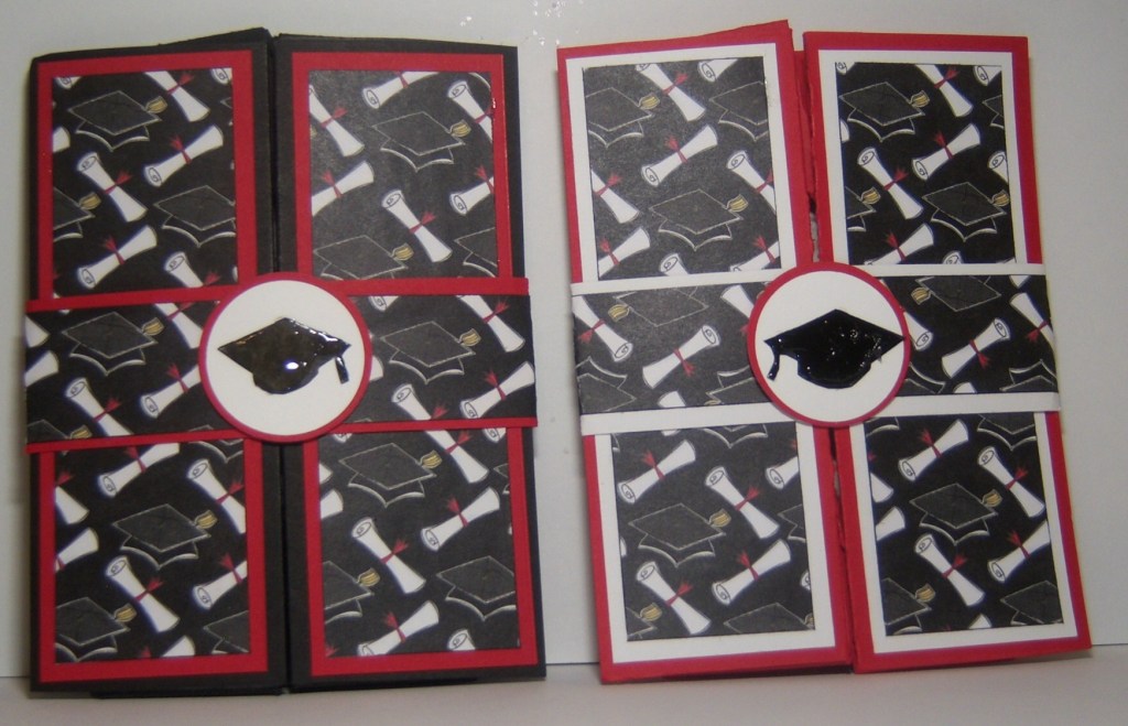 We went to Hobby Lobby for the pp and came home and got to work. She did a lot of it herself. The graduation caps, on the belly bands, were fussy cut from a different piece of pp and we added Glossy Accents to them.