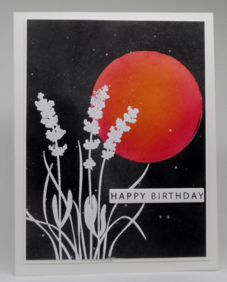 Beautiful card. Your really captured the Super Moon. It wasn’t that color when I saw it but it looked huge. The silhouette image is lovely stamped and embossed in white.