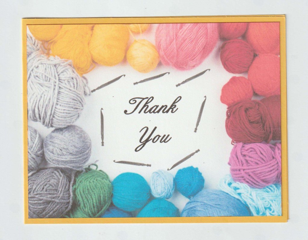 Today’s card is for a very special friend. Knowing how beautifully she crochets I asked if she would crochet me a cell phone pouch to hang around my neck. Actually, she made the strap long enough to hang crossbody, and to my surprise made 4 of them (she said a lady needs choices). While trying to come up with a plan for the thank you card the idea of finding yarn background paper popped into my head. So off to Google I went. This yarn pattern was perfect for adding a sentiment. Sentiment was printed on the computer and crochet hooks are computer clip art.