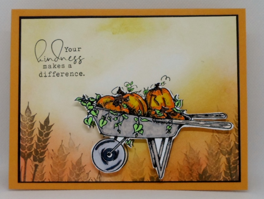 2. Love your sponged background, and you colored your pumpkin and wheelbarrow beautifully!! Love how you stamped off your wheat stalks and popped up your focal image to add depth. Such a pretty card!