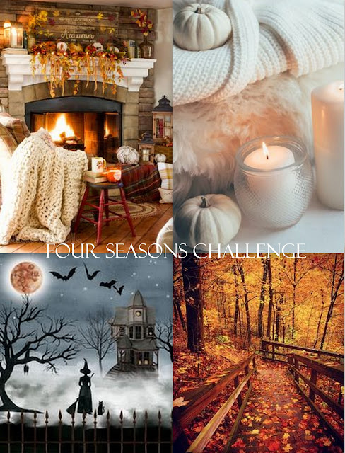 Four Seasons Challenge is October Anything Goes Fall and the mood board included a foggy Halloween night that I used for inspiration on my background.