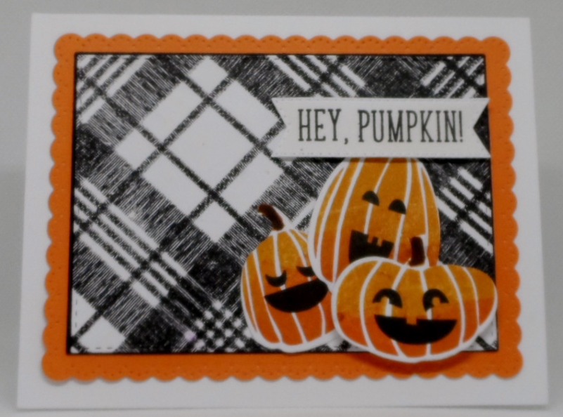 Cute, cute, cute!!! Love that plaid background with the scalloped border. Those pumpkins are so adorable.