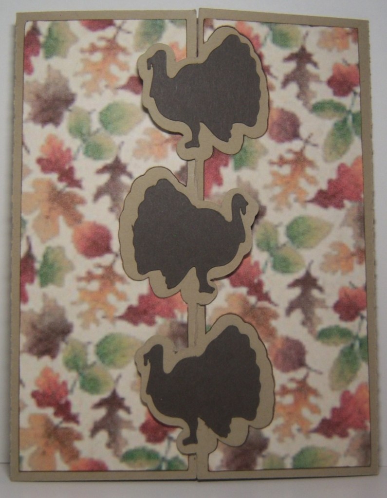 Lovely gatefold card! I like the turkeys on the beautiful patterned paper.