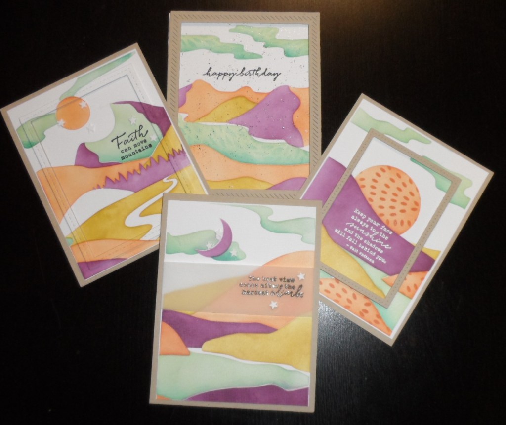 1. This stencil set is so pretty! I watched Crafty Al’s VLOG and she shared this stencil with her and her daughter’s cards. Have fun creating with several ink colors. Your cards are so pretty!