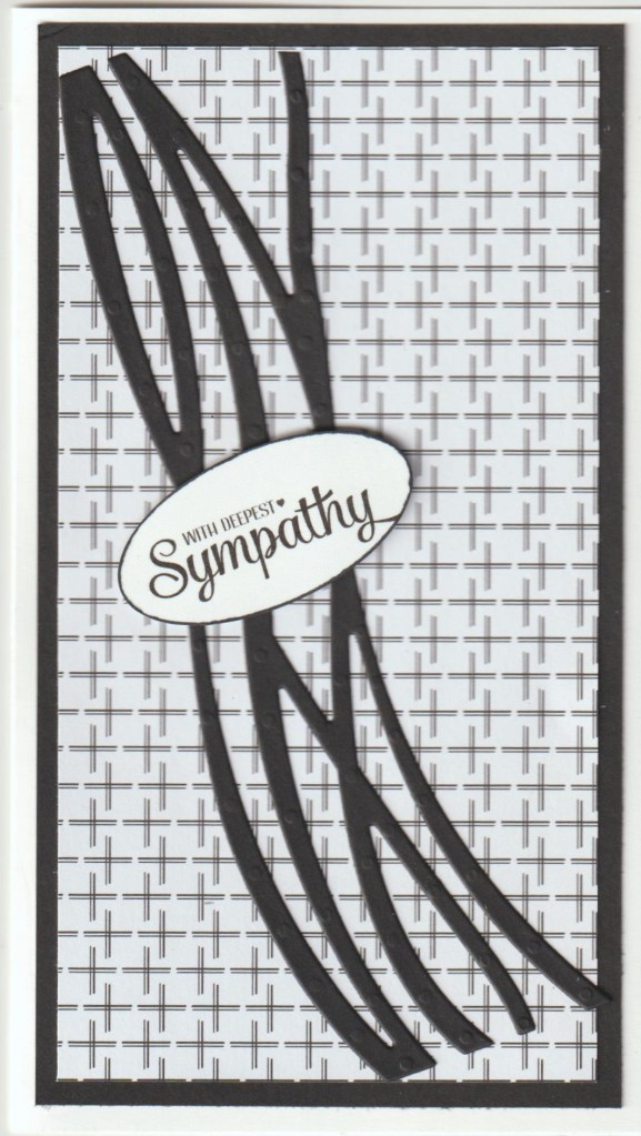 1. The patterned paper with the scribbles design made a lovely masculine sympath card. I’m sure your busser will appreciate your thoughts of condolence.