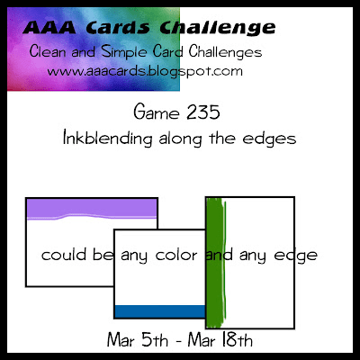 A new day and a new challenge or two! AAA Cards Challenge #235 is always a clean and simple challenge and this month the challenge is ink blending along the edge. Stencil Fun March Challenge which you are required to use a stencil is also a CAS challenge so I’ll be sharing my card with both of these challenges.