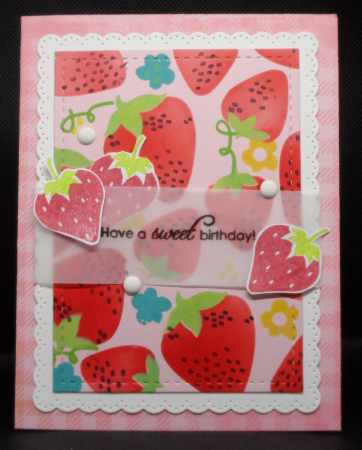 2. Good enough to eat and I have fresh ones in my refrigerator right now. Love the new fruit at this time of year and your card is mouth wateringly beautiful. The stenciling is so well done, that like the others. I think it looks like patterned paper.