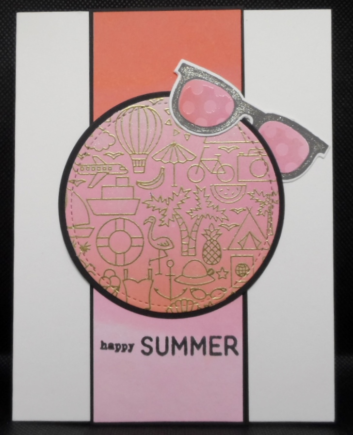 This is so fun Gayle! I love the ombre strip that draws the eye to that embossed circle with so much detail and the sunglasses are a fun extra touch. A great summer vibe! Thanks for playing with us over at As You See It this week!