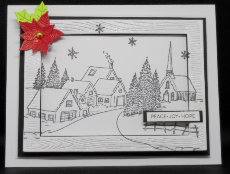Elegant and yet masculine!! Thanks for playing along with our “Christmas in July” challenge over at Cardz 4 Guyz!! You rocked the Christmas elements with your snowy scene and then nailed the masculine element with your village in the black and white color combo!! -Deb Horst, DT #C4G326