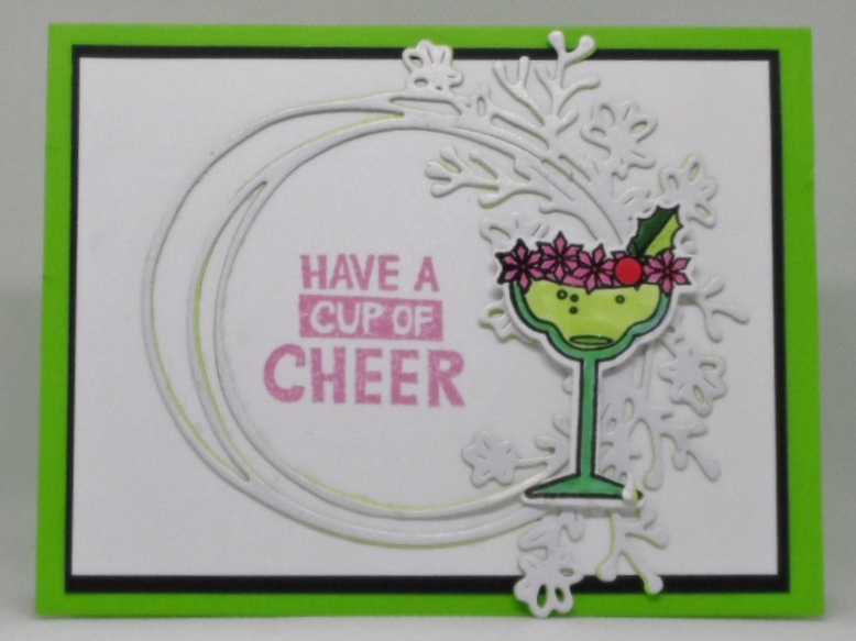 A cocktail wreath is a fantastic idea. Hmmm, that might be a fun Christmas party idea. Your card is great and I love that you had fun with it.