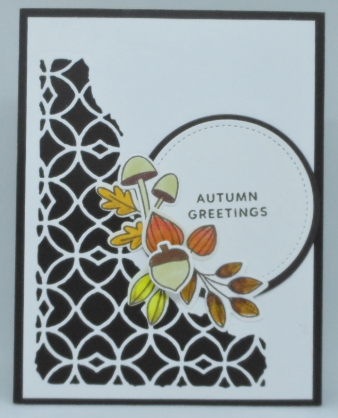 Great autumn card with those pretty colored images. Love the die you used for the background, and of course all the brown!