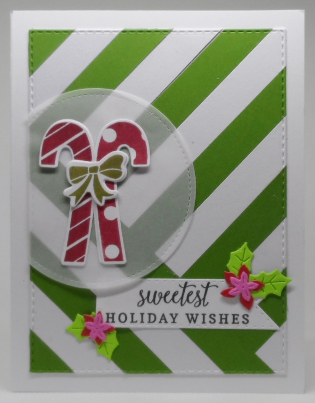 1. Very Festive! FAB candy cane and I love the Vellum die cut–there’s just something magical about Vellum! Loving your stirpes, that design is great! Thanks so much for playing along with us at The Double D, Stripes and/or Dots Challenge. Donna, DT Member.
