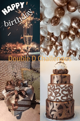 Double D Challenges is celebrating their 8th birthday/anniversary with a mood board representing the traditional gift of bronze. DCWV’s The Natural stack provided my background patterned paper, the Taylored Expressions frame and bow were made by copper embossing a piece of cardstock. Since my card will be given to our granddaughter who is turning 6 in a week, I needed a cute factor so found the SimonSaysStamp Party Like a Puffin stamp and die set.