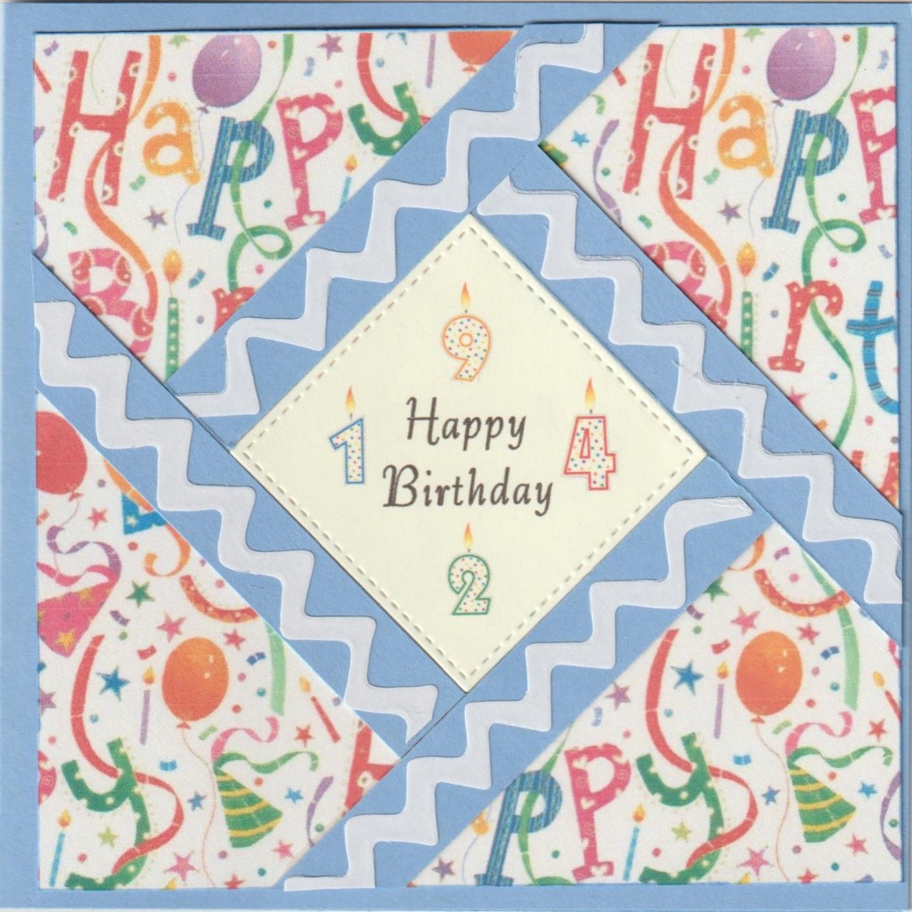 Hello and welcome. Today’s card is for dear old sister. Background paper was found online while looking for birthday gift wrap. Zig-zag strips are from and old Sizzix extended thinlits die, center die cut is Stitched Squares by Die-namics, number candles are clip art. Inside sentiment “May your day be as amazing as I am.” was found online. She gets lots of sympathy for having me as a little sister. LOL