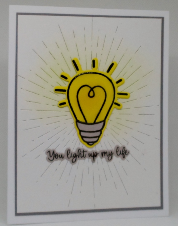 Nothing says love more than a valentine card for our oldest grandson. He does light up my life! The shining lightbulb is a GinaK Designs stamp set which is temporarily misplaced :) Taylored Expressions Ray’s Pierce & Cut Plate with a little bit of yellow ink for the glow. I already received a thank you for a really cool card from him.