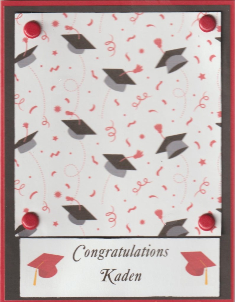 2. Congratulations Kaden and good luck to him in his career path. Great graduation card with your special touches. He will love it.