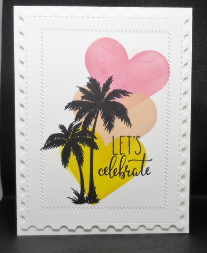 1. 48 years – wow – that is something to celebrate, love the stenciled hearts behind your silhouette palm trees. Thanks so much for sharing with us at AAA Cards.