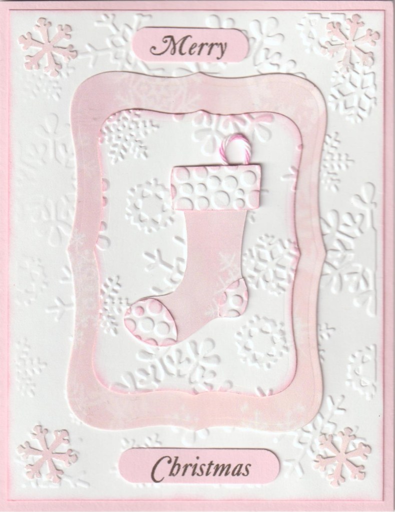 Love the pink Christmas card and your adorable stocking and embossing.