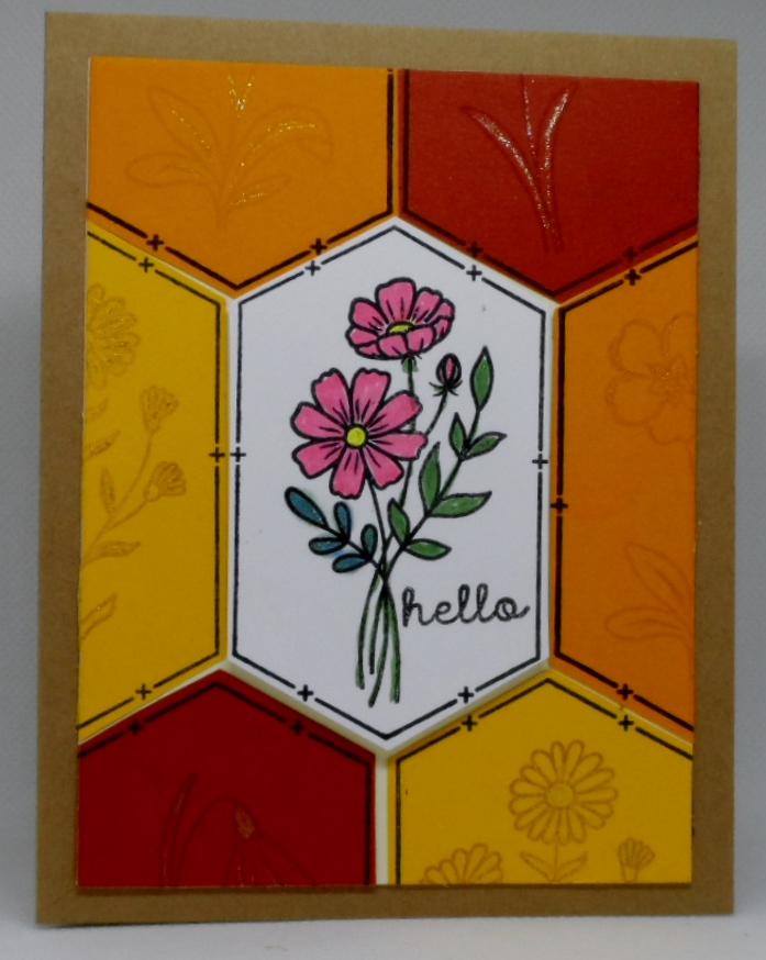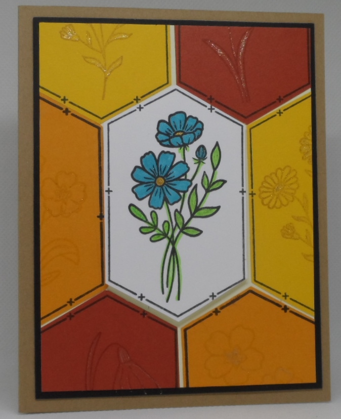 A Gift with Purchase stamp set from Taylored Expressions gave me two cards by stamping and cutting the colored panels in half. The flowers on the colored cardstock was stamped in similar colored inks and some clear star gelly roll highlighting was added to them for a little sparkle. The panels lined up pretty easily after fussy cutting them out. The second card is below: