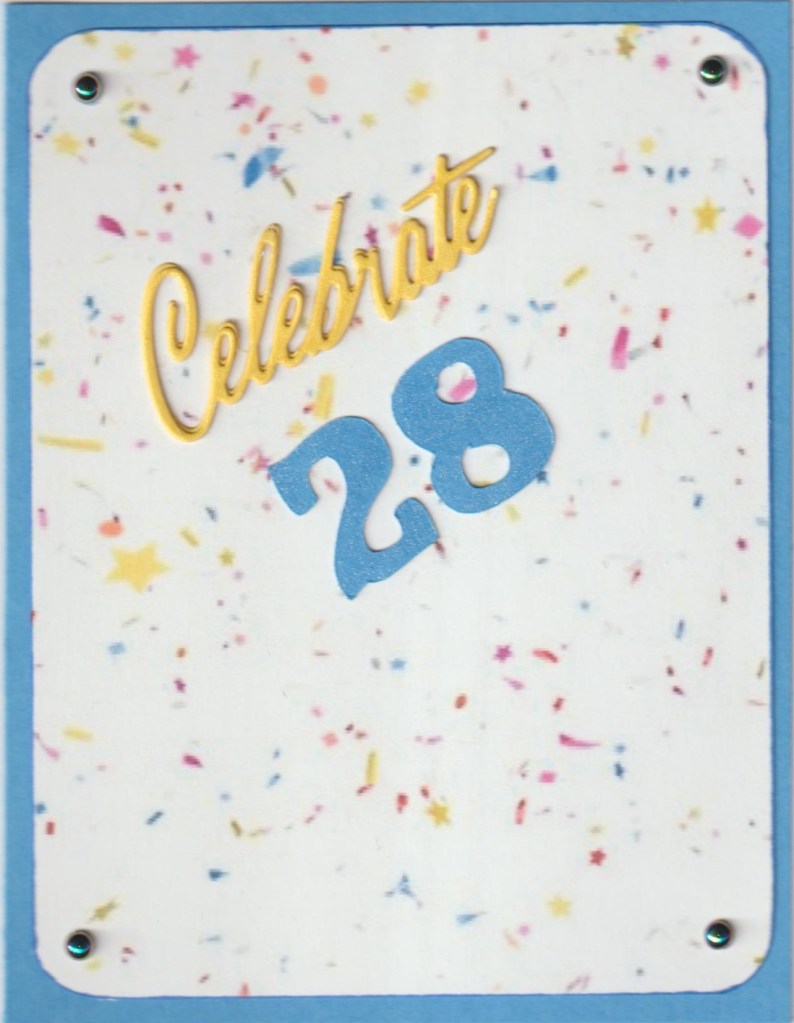 Background paper was found online. Celebrate die is Cheers to you by Papertrey cut twice and Wink of Stella added. Numbers were cut on the Silhouette and also have Wink of Stella for a little bit of sparkle.