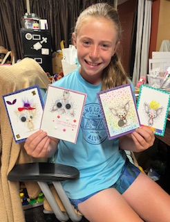 So happy that Brooke was able to come for a sleepover and she decided to play with my new stamp set from Unity Stamp Company’s Functioning Chi Chi. This stamp image cracked me up and had a lot of fun watching Brooke create her “more is best’ cards.