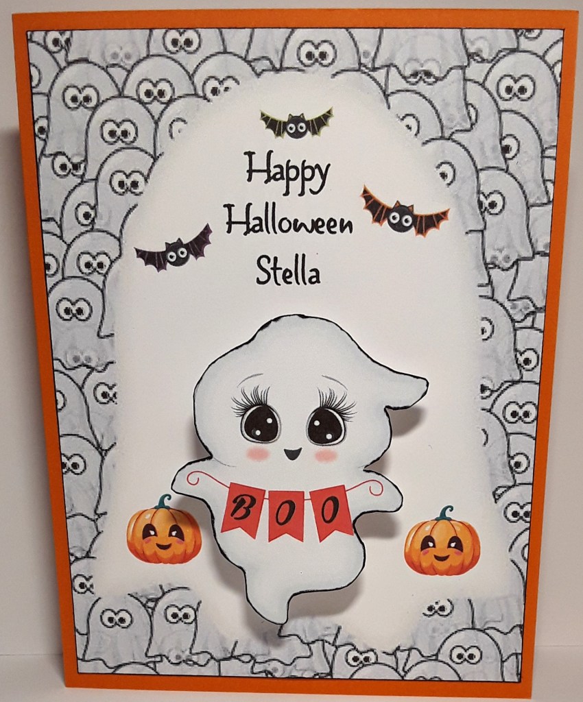 Love your ghost and it’s perfectly placed. Such a fun card with your all too cute wobbling ghost.