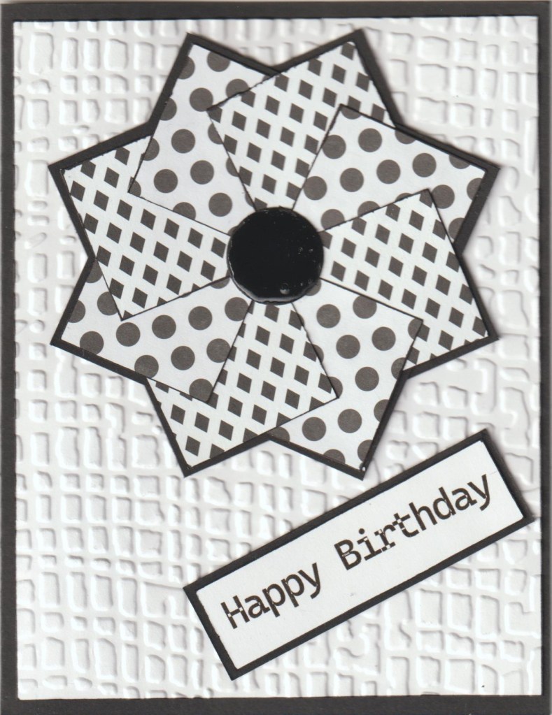 Great embossed background for your pinwheel card. The patterns are a wonderful combination. Perfect masculine card.